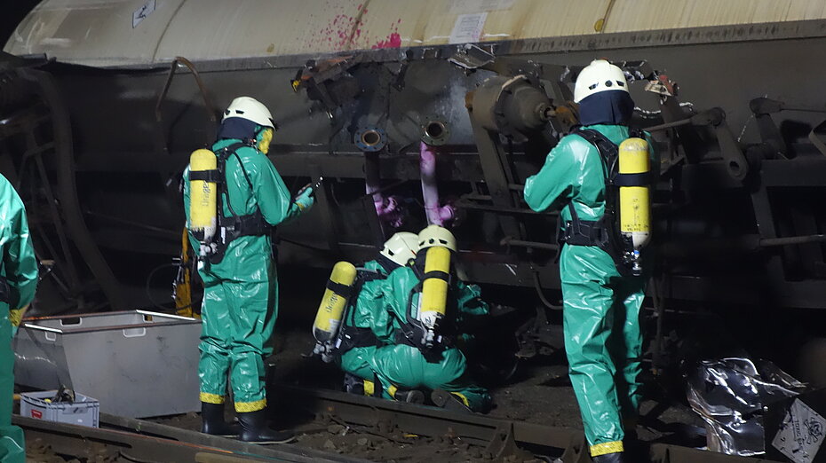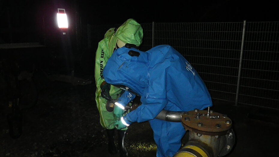Die Ortsfeuerwehr Letter unterstützt den Gefahrgutzug dann mit dem Tanklöschfahrzeug 16/25 und dem Mannschaftstransportwagen.