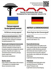 Plakat zu Notruf und Sirenensignale für Geflüchtete aus der Ukraine